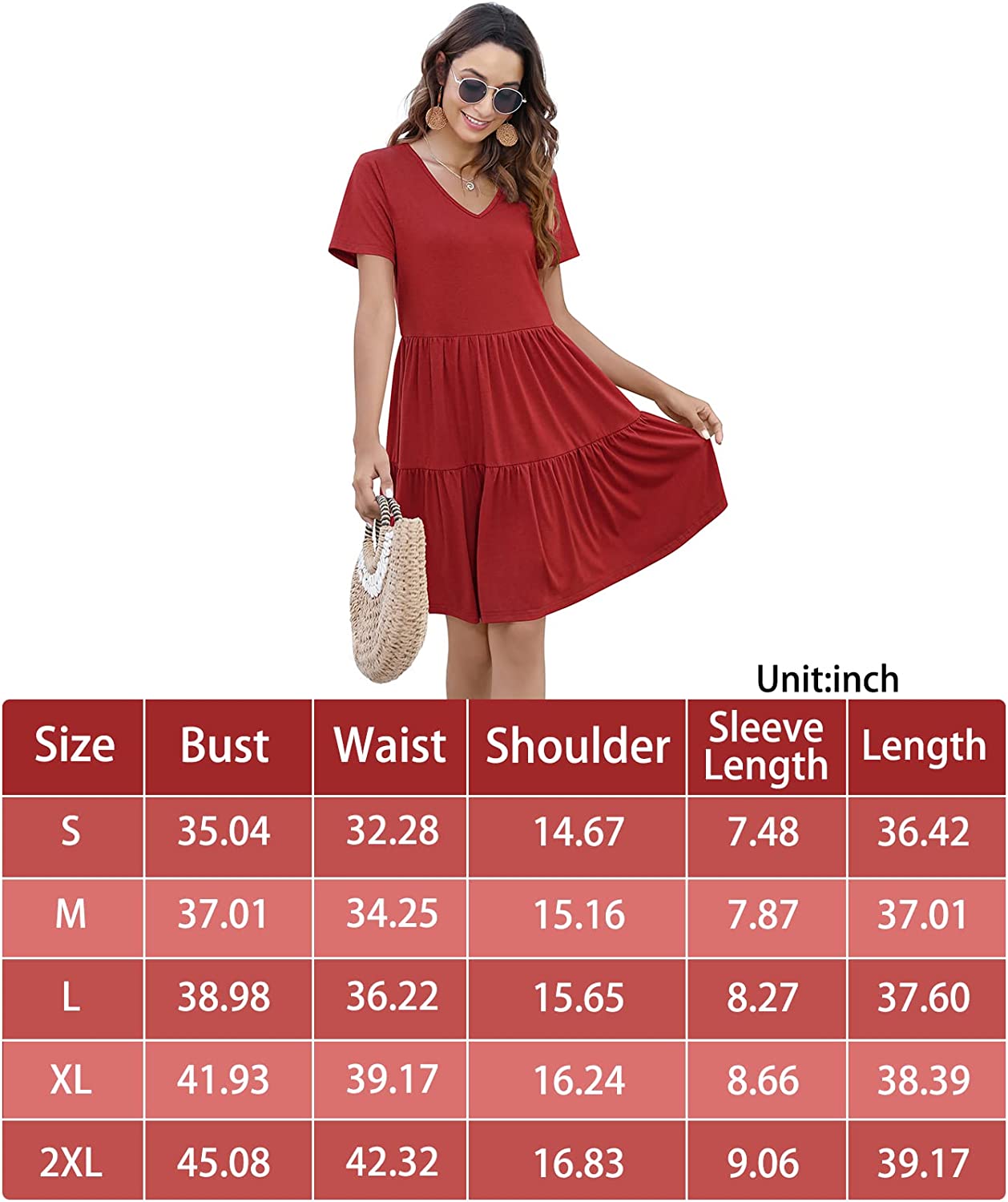 • Features: Casual babydoll dress for women is flattering for any female body type. Dresses for women 2022 is looks great on petite and tall women and makes well-proportioned body looks, looks slimmer and taller. Stretchy waistband cinches at the waist, which can hide your tummy perfectly, dresses that hide belly fat, while the belt does not tighten. Feminine v neck mini dress with flowing hem are perfect for curvy women. Flowy pleated womens summer dresses will be your new favorite dress in 2022!