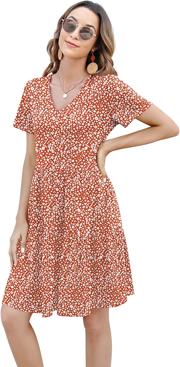 • Match: Ruflle tunic flowy dresses for women is great pair with high heels, sandals or boots, tights, leggings, hat, or simply laying with coats, jackets in spring, fall and winter. You will leave a fantastic impression on vacation. Above knee length floral dress and flowy swing shift A-Line dress make you elegant and radiant. Super cute and beautiful babydoll mini dress can add your vitality and also nice for juniors dresses.