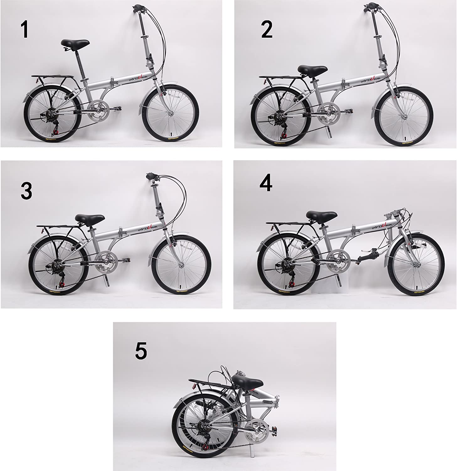 20 - inch folding bicycle designed for commuting and exercising. Shimano 6 speed shifter and derailleur. semi-alloy front and rear V-brake. WANDA 20" x 1.75 tires Quick removable front handle stem. with alloy silver color cap & PVC black bell. Easy assembly and ride
