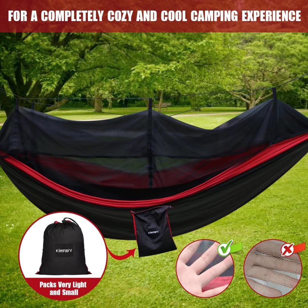 Kinfayv Camping Hammock with Net and Rain Fly - Portable Double Hammock with Bug Net and Tent Tarp Heavy Duty Tree Strap, Hammock Tent for Travel Camping Backpacking Hiking Outdoor Activities,Red