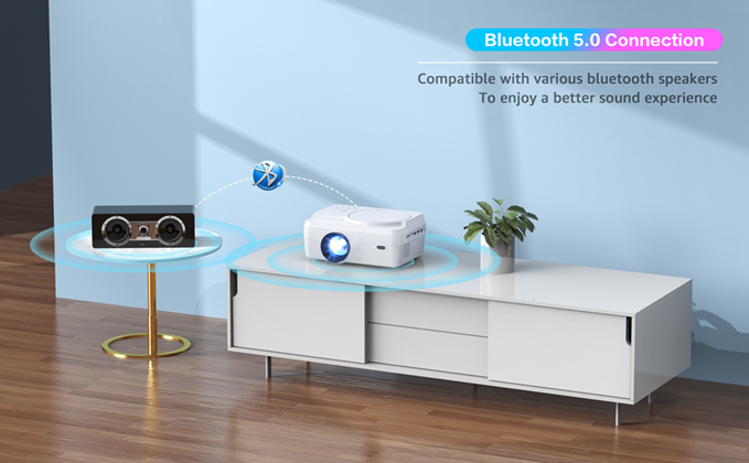Note: The projector can only be connected to a Bluetooth speaker, not a smartphone.