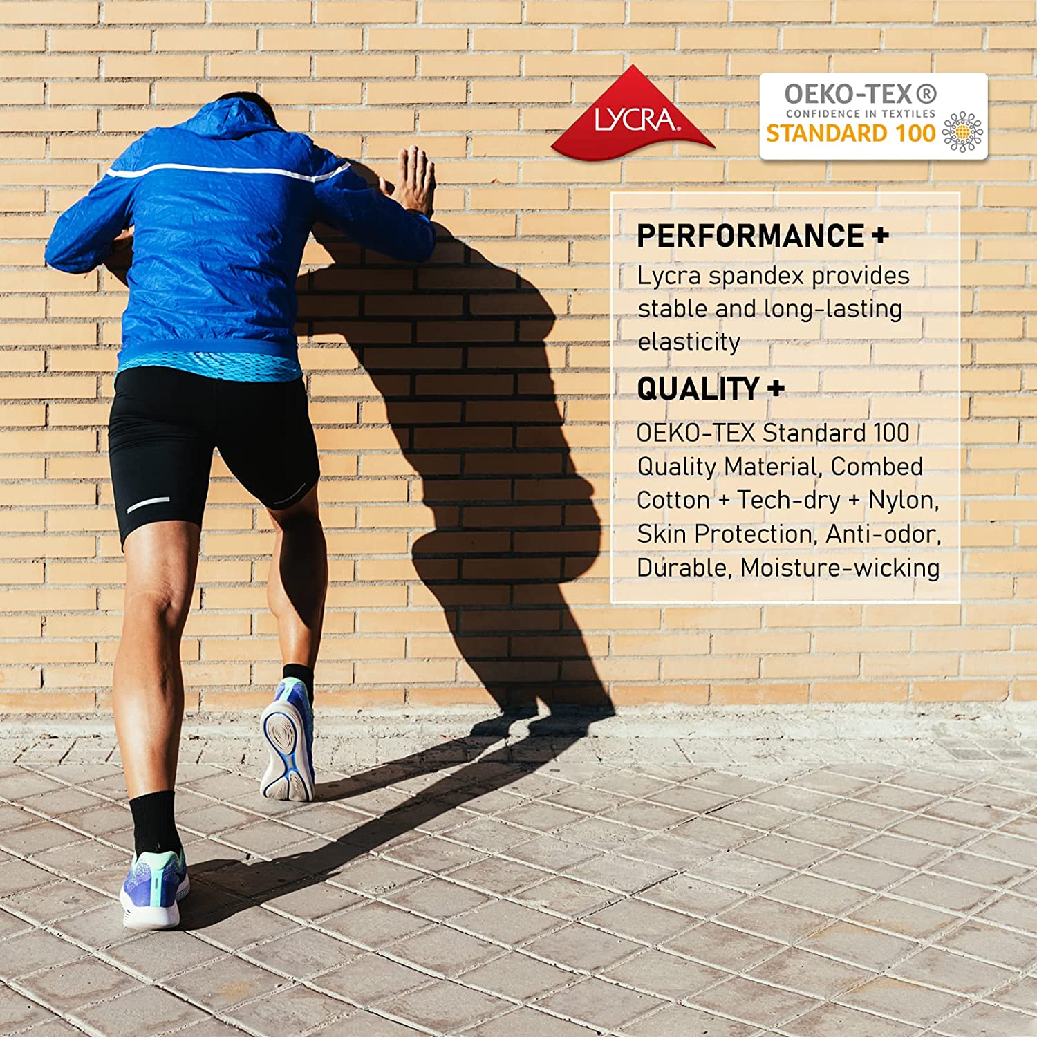 UNIQUE SOLE: Design LEFT AND RIGHT SOCKS according to the plantar structure; Combed Cotton and Tech-dry yarns; Cushioned, more soft and comfy, shock absorption
