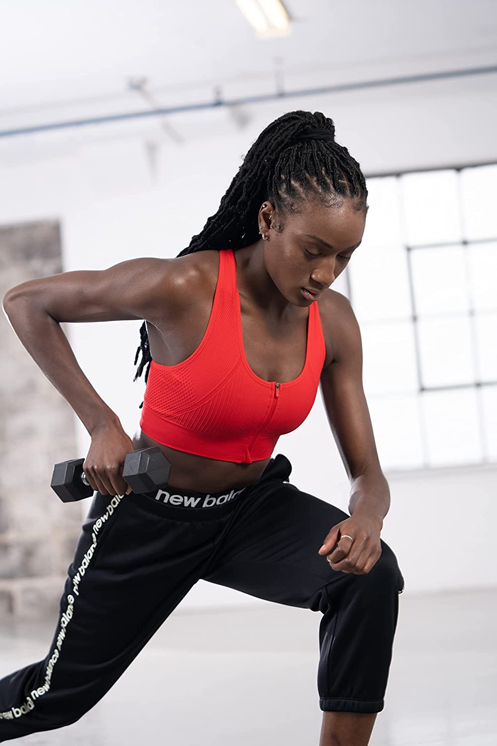 New Balance Women's Seamless MID Impact Zip Front Sport Bra with Removable Pads