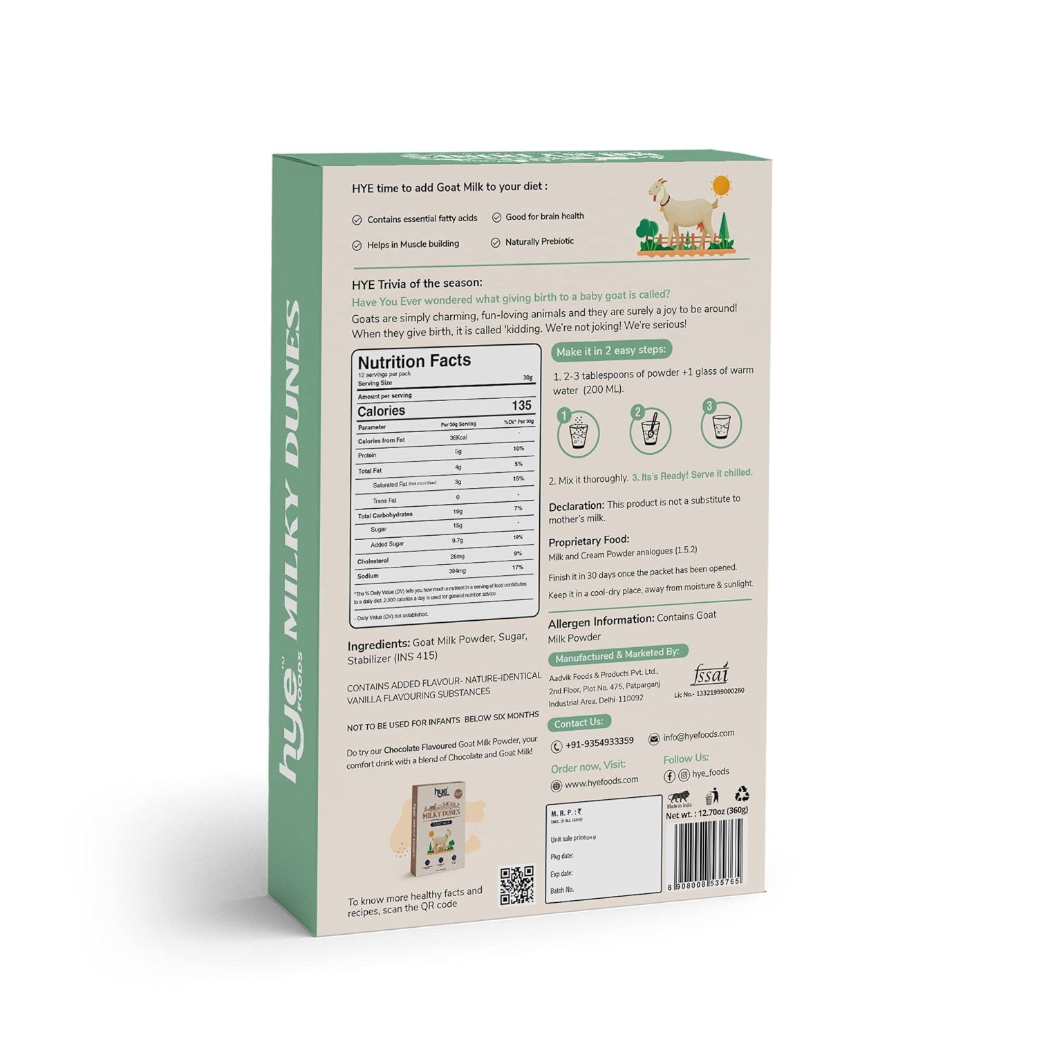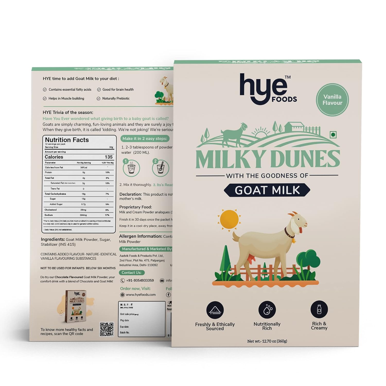 HYE FOODS Milky Dunes Goat Milk Powder | Pasture Grazed ? Vanilla Flavour ? 12.69 Oz (360gms)