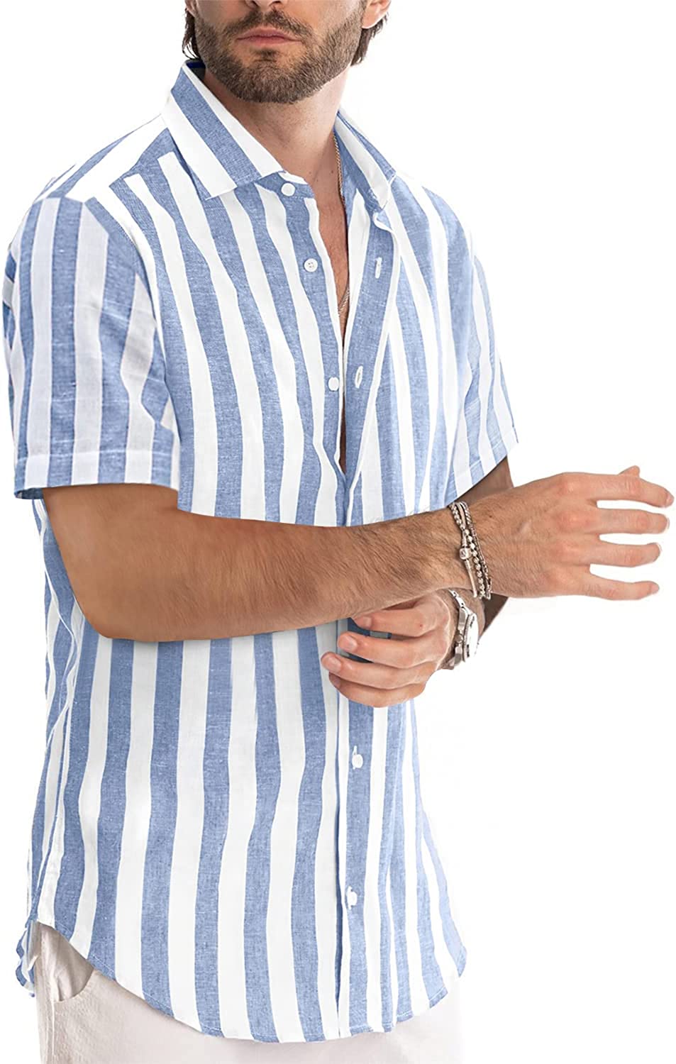 Design: Stylish casual short sleeve stripes button down shirt. This wardrobe-essential shirt features an easy, flattering fit. Perfect gifts for your boyfriend, son, husband, and yourself.