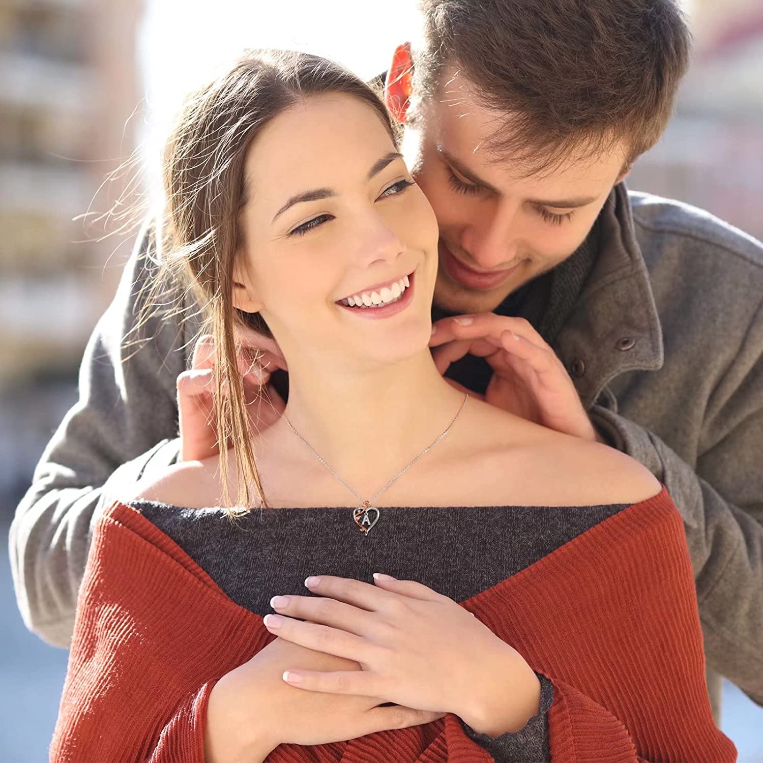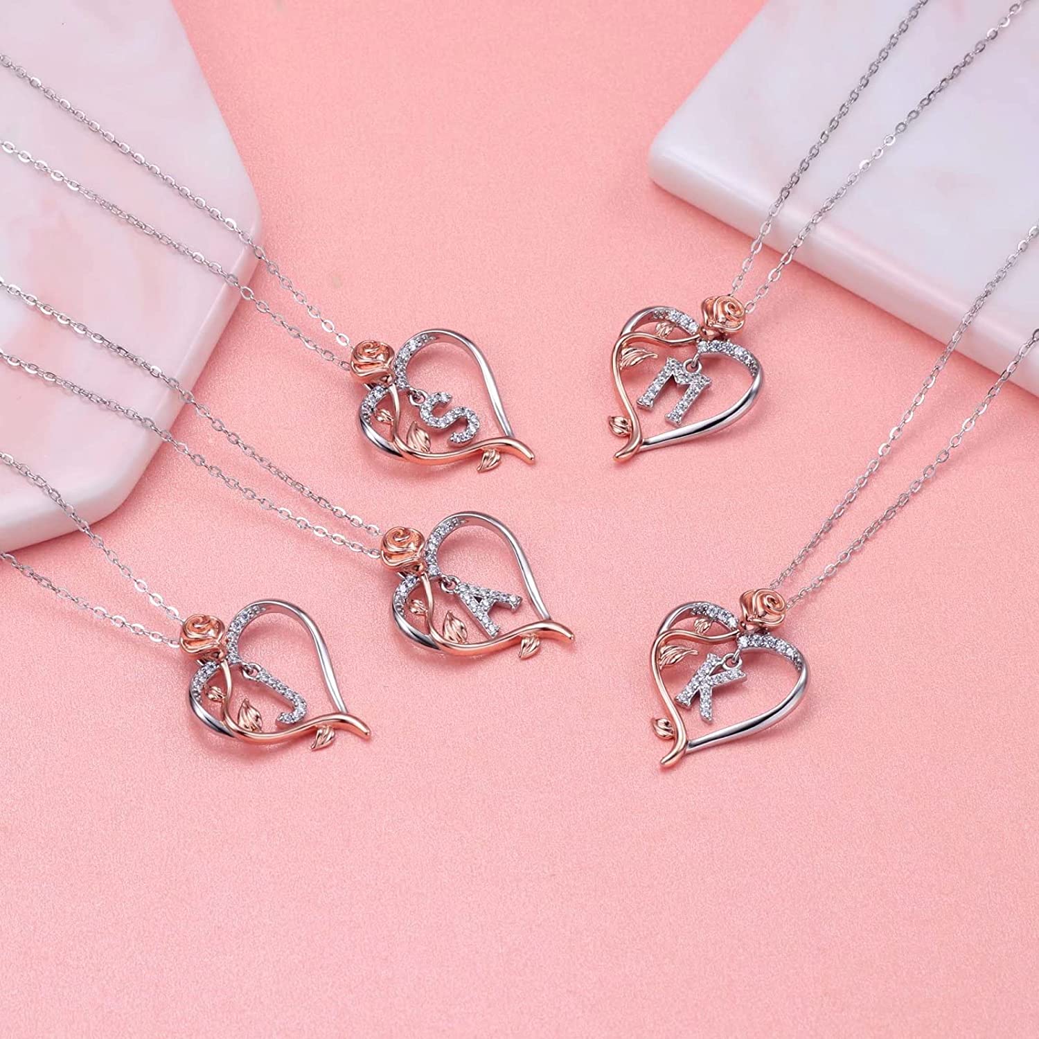 Iefil Rose Heart Necklaces Gifts for Women,925 Sterling Silver Rose Love Heart Initial Letter Pendant Necklace Jewelry Mothers Day Valentines Anniversary Birthday Gifts for Her Mom Wife Girlfriend