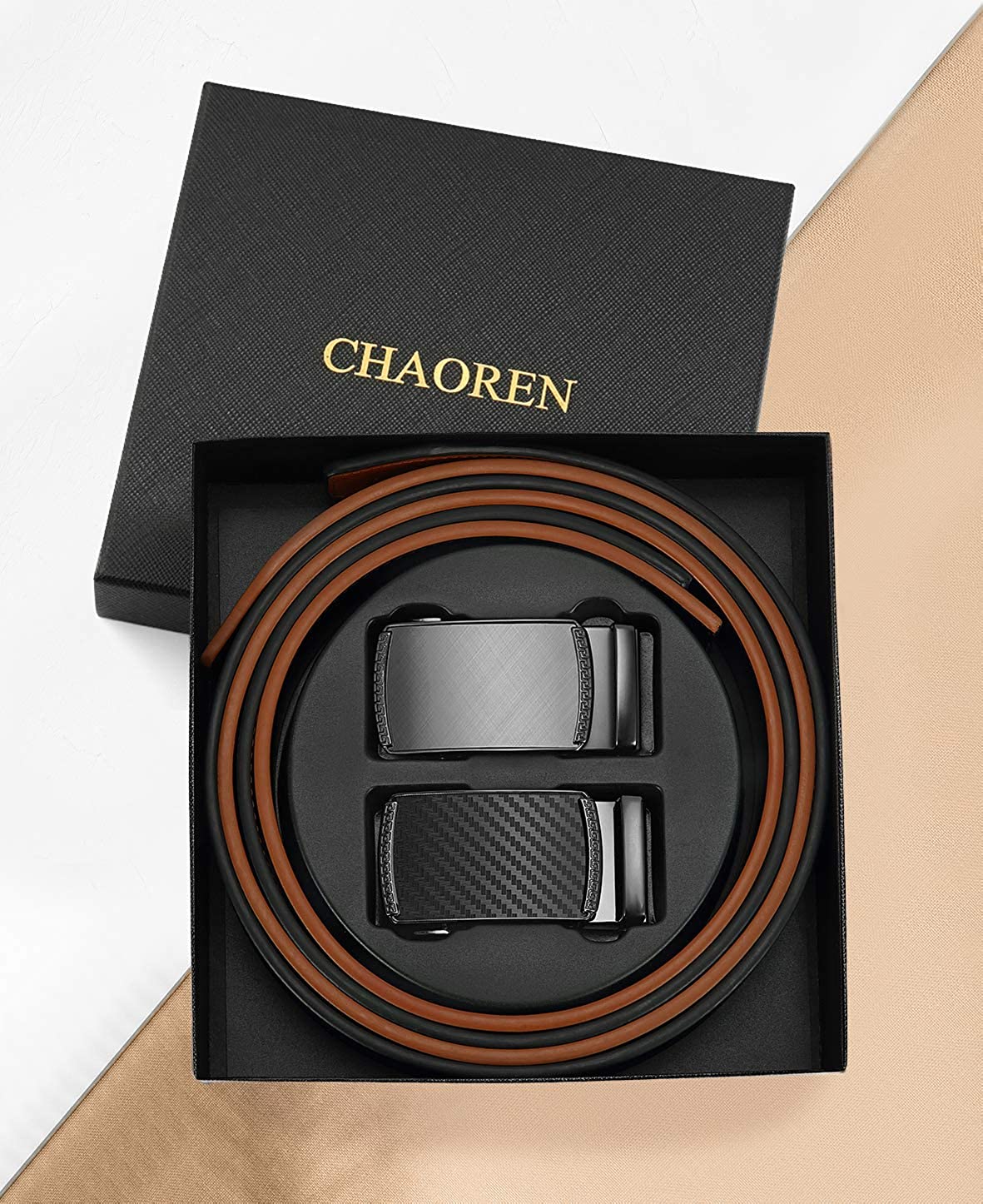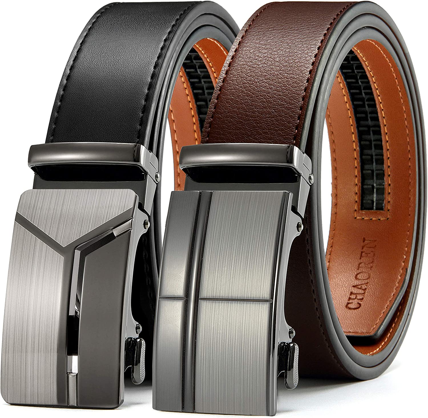 CHAOREN Ratchet Belts for Men 2 Pack - Mens Belt Leather 1 3/8" in Gift Set Box - Meet Almost Any Occasion and Outfit