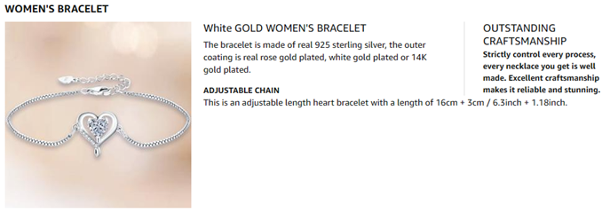 • Heart design: necklace design is elegant and beautiful. It is an eye-catcher and sparkling when worn on the wrist. In the middle a heart is inlaid with 5A cubic zirconia, next to it there is a delicate and small 5A zirconia that reflects the main stone. It stands for love and affection and is perfect as a gift for your girlfriend, family or friends.