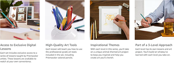 • Learn to draw with digital lessons paired with high-quality art supplies