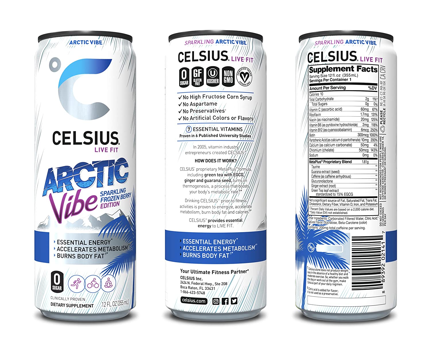 CELSIUS Arctic Vibe Sparkling Frozen Berry, Functional Essential Energy Drink 12 Fl Oz (Pack of 12)