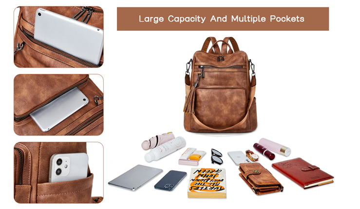 【Construction & Large Capacity】This backpack purse for women adopts 1 inner zipper pocket, 2 inner slip pockets, 2 front zipper pockets, 2 side pockets and 1 rear zipper pocket, deep pockets and back anti-theft design increase the security of personal items. Multiple pockets can keep your things well organized.