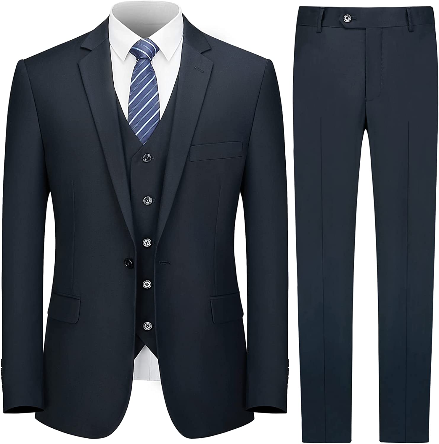 【WHAT YOU GET & HOW TO KEEP】 With the affordable price, you'll get suit jacket*1, pants*1, vest*1 and tie*1. Dry clean only. Low iron if possible. Remember to hang the slim fit suit when you are not wearing them.