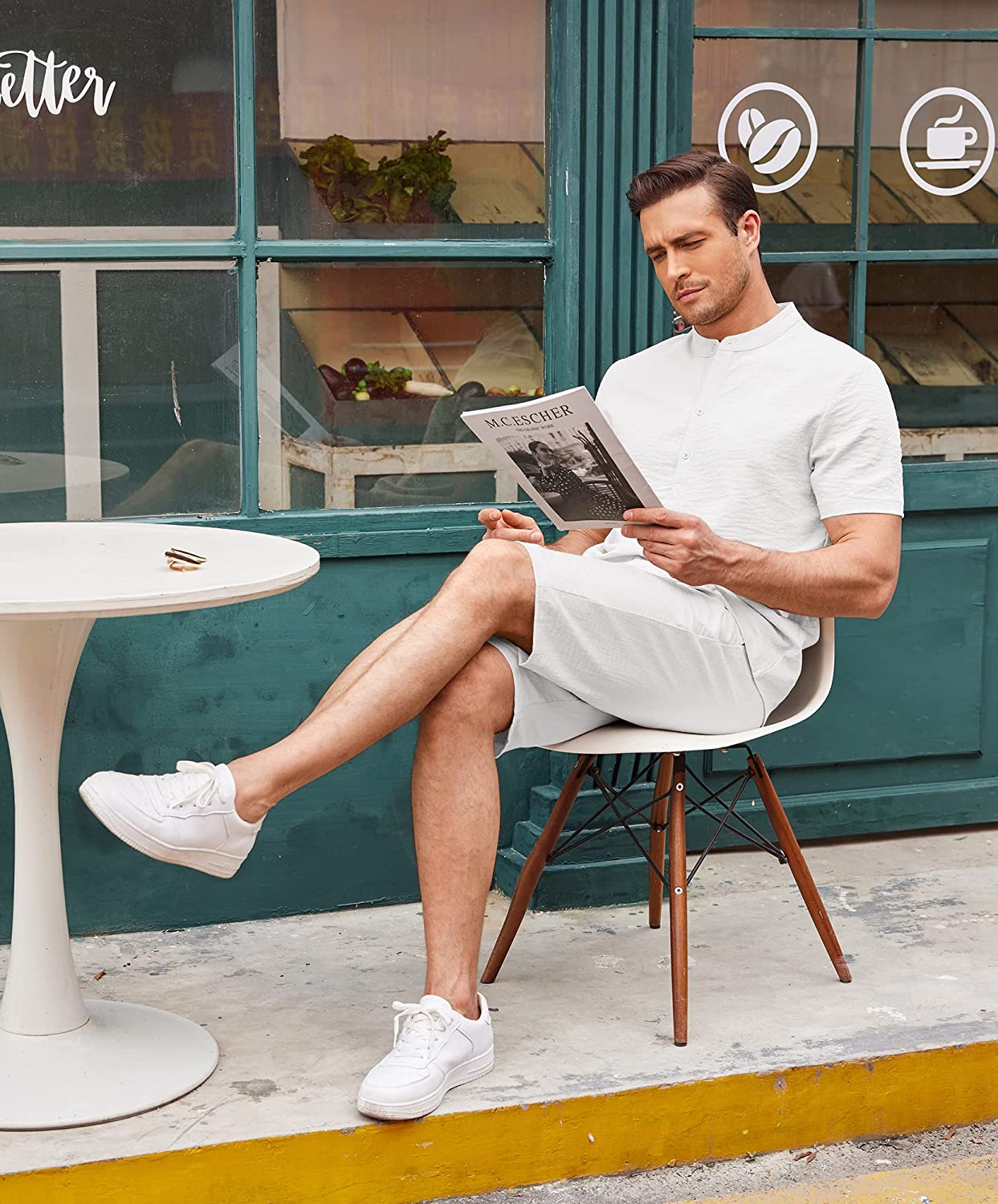 COOFANDY Mens 2 Pieces Linen Set Henley Shirt Beach Short Summer Outfits