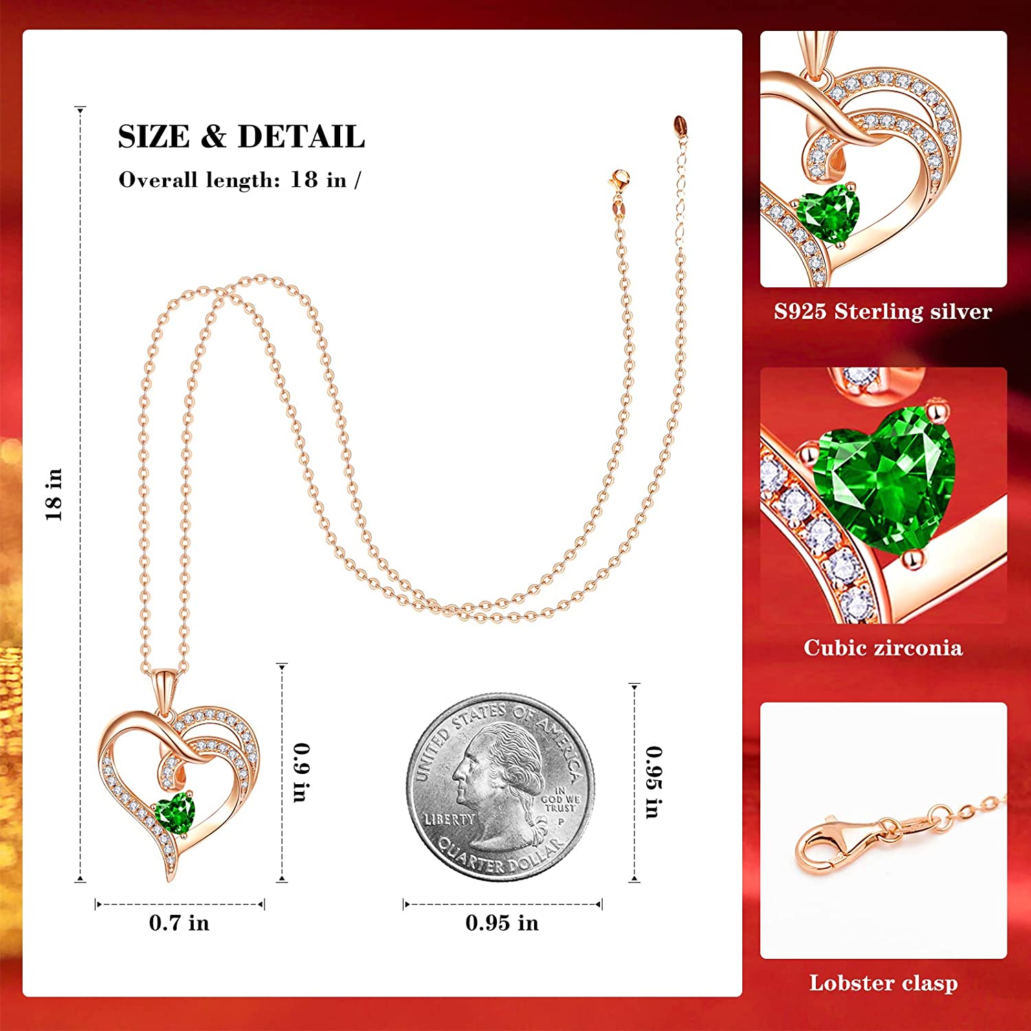 • 【Reliable Quality】- The silver necklaces for women with 18k rose gold/18K white gold plating on the surface does not tarnish under normal use. The heart pendant necklace does not contain heavy metals, so you can wear it without worry. The high quality chain of the heart necklace is smooth and not easy to break. The round cut 5A zircon shines on the heart necklaces for women.Let you stand out in crowd.