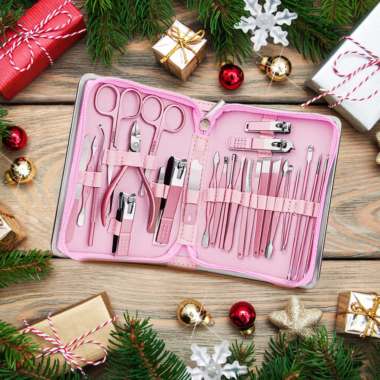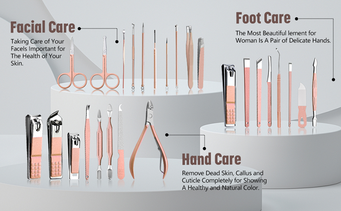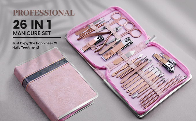 ?【26 in 1 Manicure Set】 Professional manicure kit includes 26 pieces of tools for facial, nail, and pedicure care which can meet all of you needs. Just enjoy the happiness of nails treatment!
