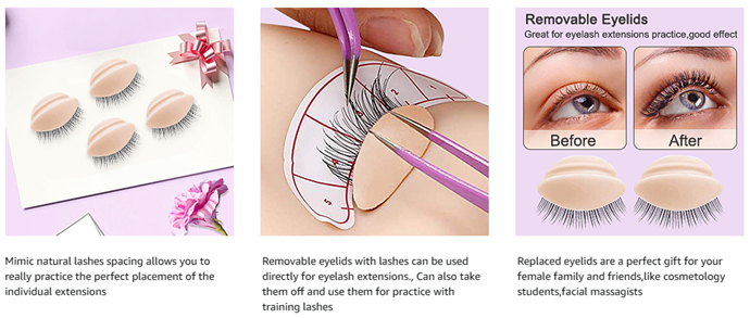 Wide use: Replacement eyelids is great for eyelashes extension training,make up training,facial massage,face painting and so on,also is good for beginner learner to practice