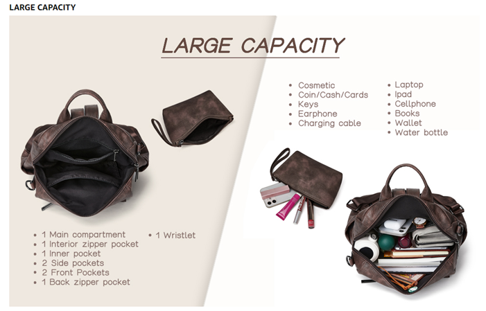 • 【HIGH-QUALITY MATERIAL】The backpack purse for women is made of sturdy and soft PU leather, zippers slide nicely and straps are very durable, comfortable and good quality. The snaps are magnetic and all the stitching has been done well.