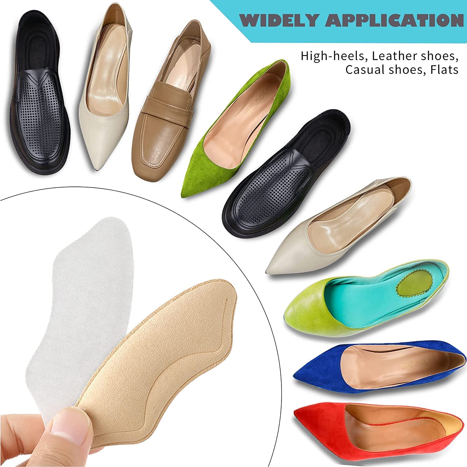 Widely Application: these heel cushions fit for many shoes such as high-heels, leather shoes, casual shoes, flats etc; they are suitable for men and women. They are applicable to new shoes, old shoes and slightly bigger shoes, they suitable for all people.