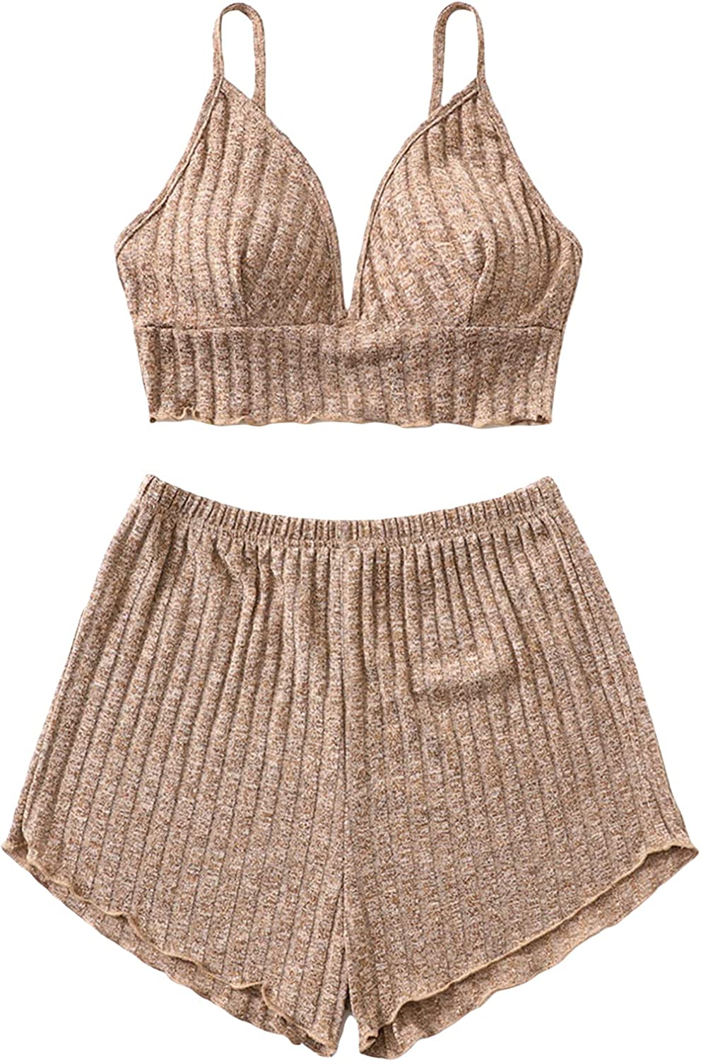 SOLY HUX Women's Sleepwear 2 Piece Lounge Set Pajama Set Rib Knit Spaghetti Strap Bralette Top and Shorts