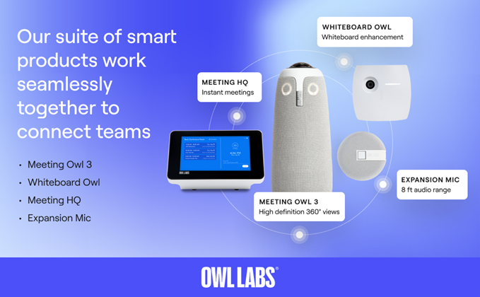 - ADAPTS TO ANY SPACE. Pair two Meeting Owls or add an Expansion Mic to expand video and audio reach in larger spaces. Compatible with Owl Labs’ Whiteboard Owl and Meeting HQ to complete your hybrid room setup.