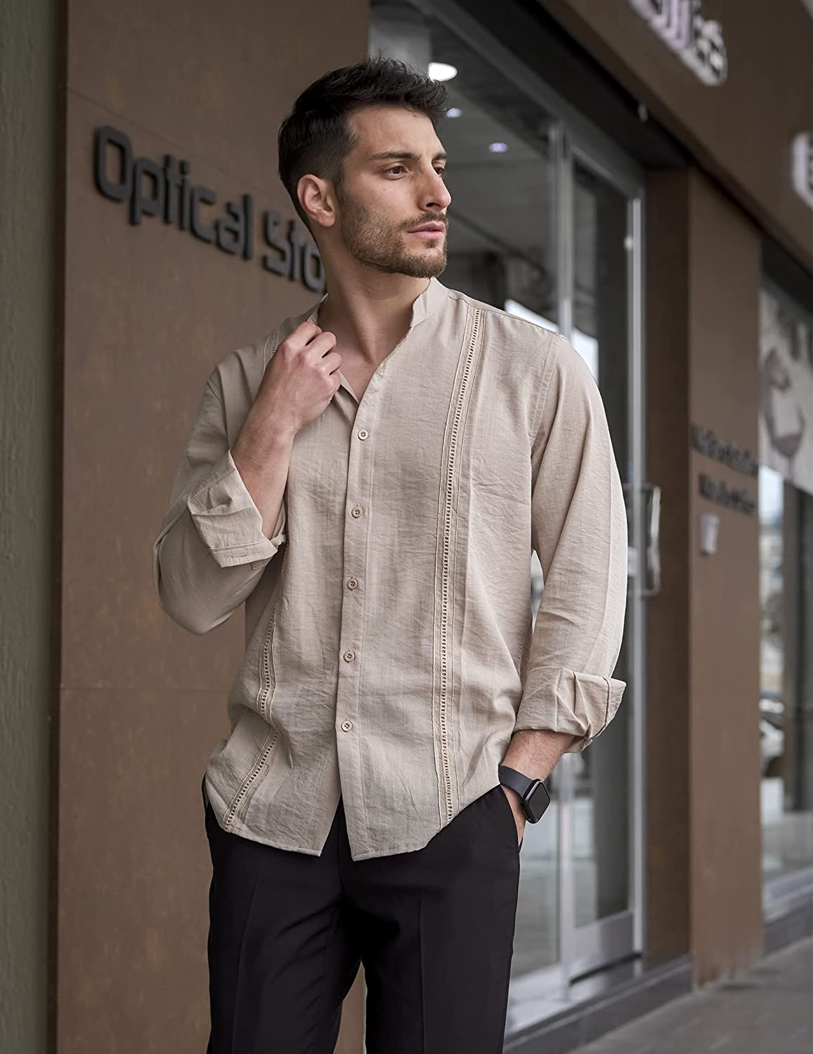 - Stylish Design: This casual shirt Fearturing Long Sleeve, Button Down Closure, Band Collar, Vertical Pleats. High quality stitch. Nice front pattern. Keep cool and composed when the temps surge in this casual shirt cleanly finished with a band collar.