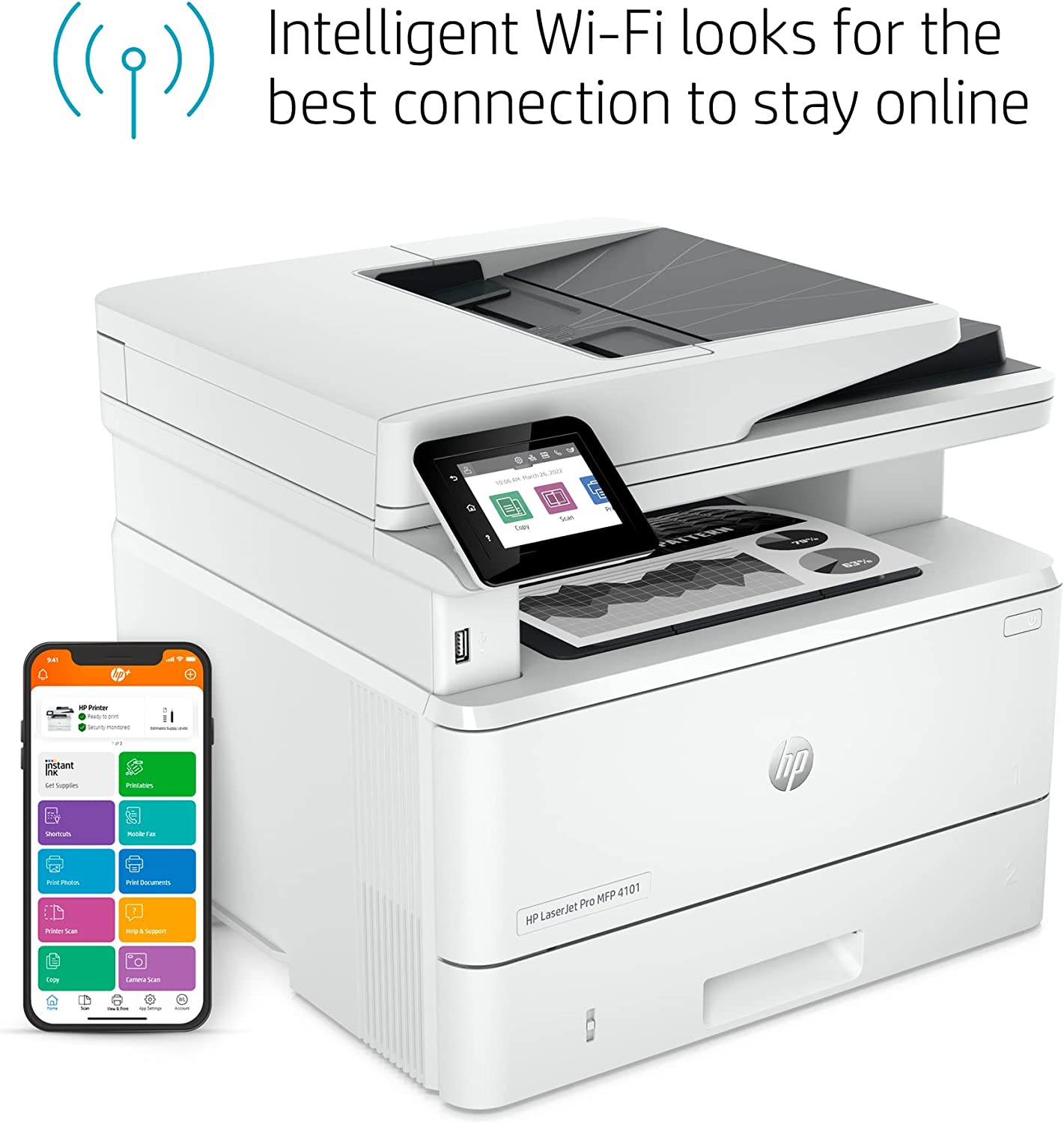 HP LaserJet Pro MFP 4101fdwe Wireless Black & White Printer - Smart Printer Requires Internet to Operate | Print, Copy, Scan, Fax | Fast Speeds | Mobile Printing