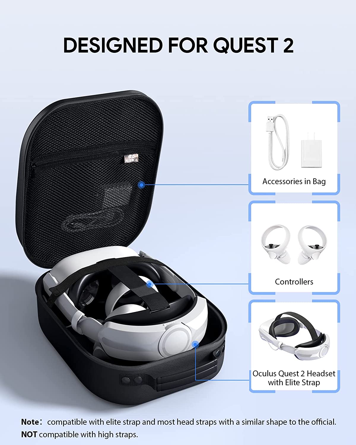 ☑️Reliable Service - If there is any quality problem, we will give you a 100% refund. Packaging includes 1 Oculus Quest2 storage case*, 1 lens protection cover*, 1 mobile storage mesh bag*, and 2 velcros*.