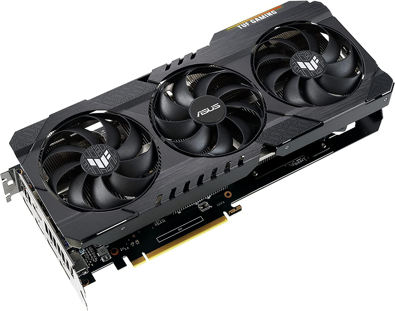 TUF Gaming GeForce RTX™ 3060 Ti V2 OC Edition 8GB GDDR6 with LHR offers a buffed-up design that delivers chart-topping thermal performance. A new all-metal shroud houses three powerful axial-tech fans that utilize durable dual ball fan bearings. Fan rotation has been optimized for reduced turbulence.