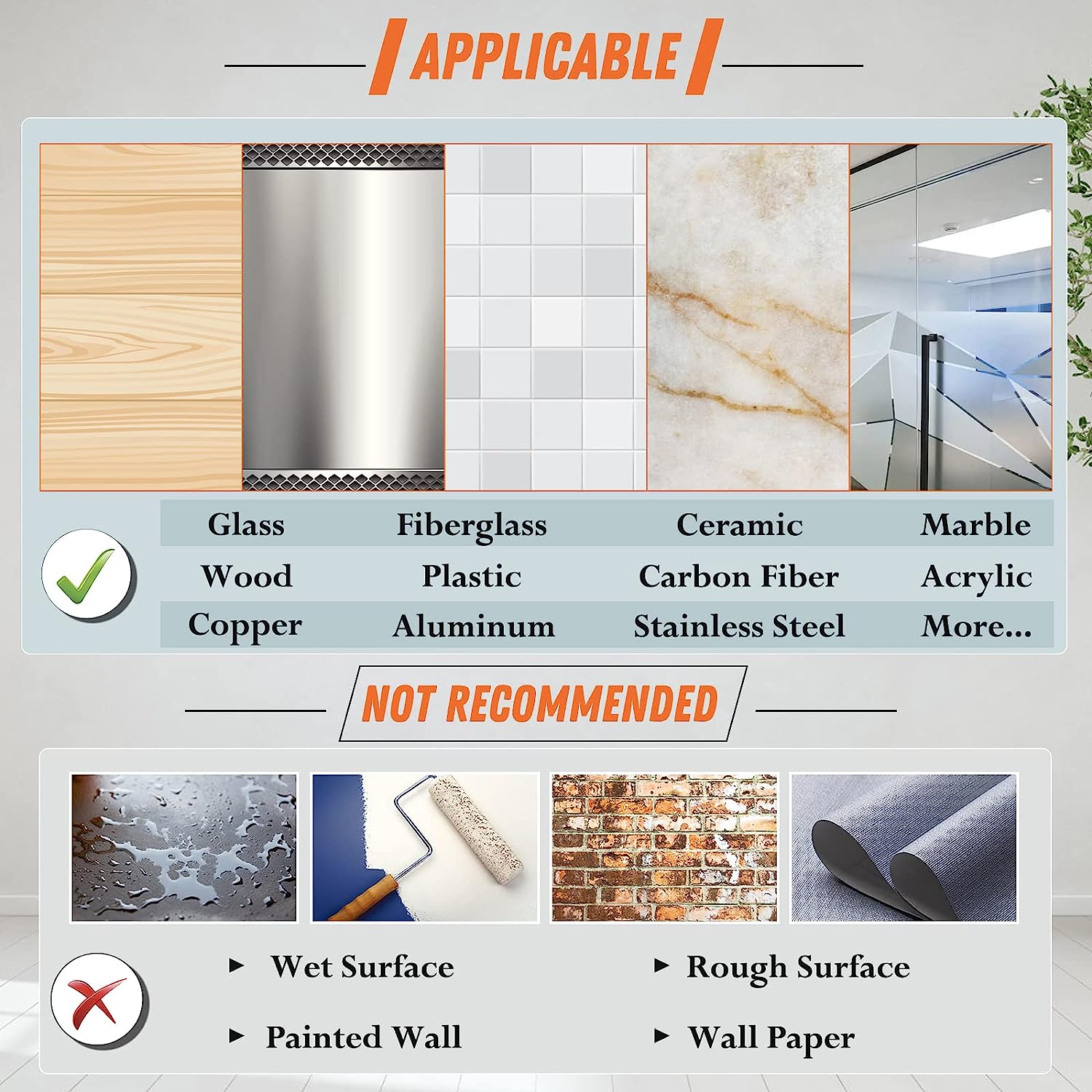 - 【Using Tips】: Please keep the mounting surface dry, clean and free of oil when mounting to make instant and permanent bond and get great water and moisture resistance ability. Applying the tape vertically on the items can make stronger bonds. Please caution to use the tape in painted wall due to strong adhesion and the nature of painted wall, which may peel off painted wall upon removal.