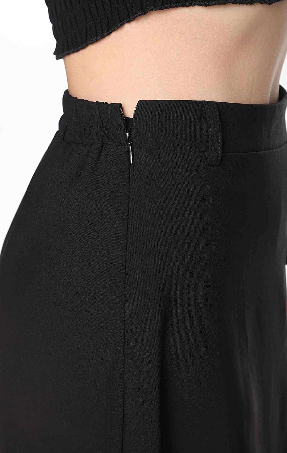 Polyester material, the fabric is comfortable and skin-friendly. Elastic waist, side zipper, don't worry about the waist too big to wear trouble. High waist design, improve the visual effect of long legs, cover the big belly or butt.