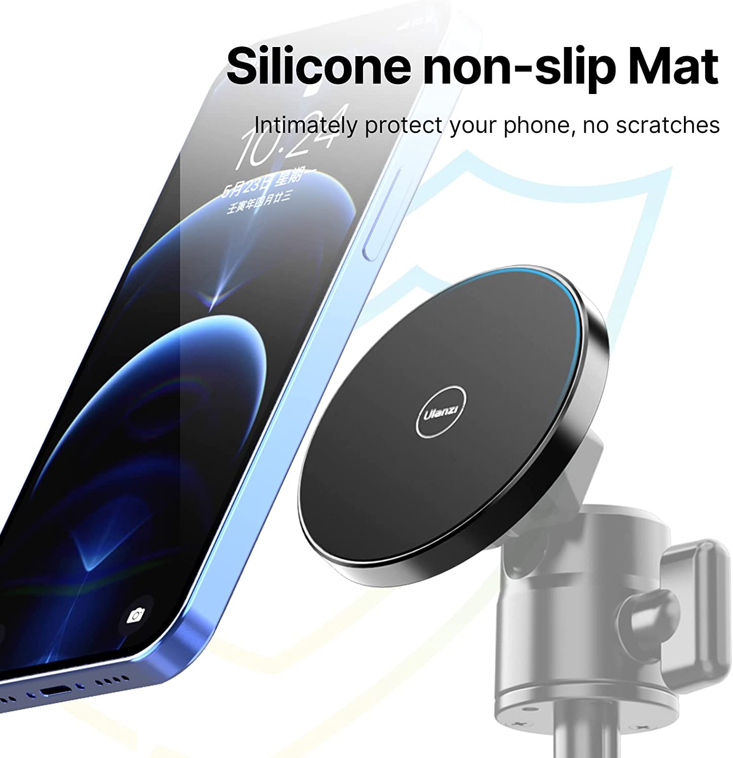 Silicone Pad: The base surface is covered with a delicate silicone pad, which keeps your phone safe.