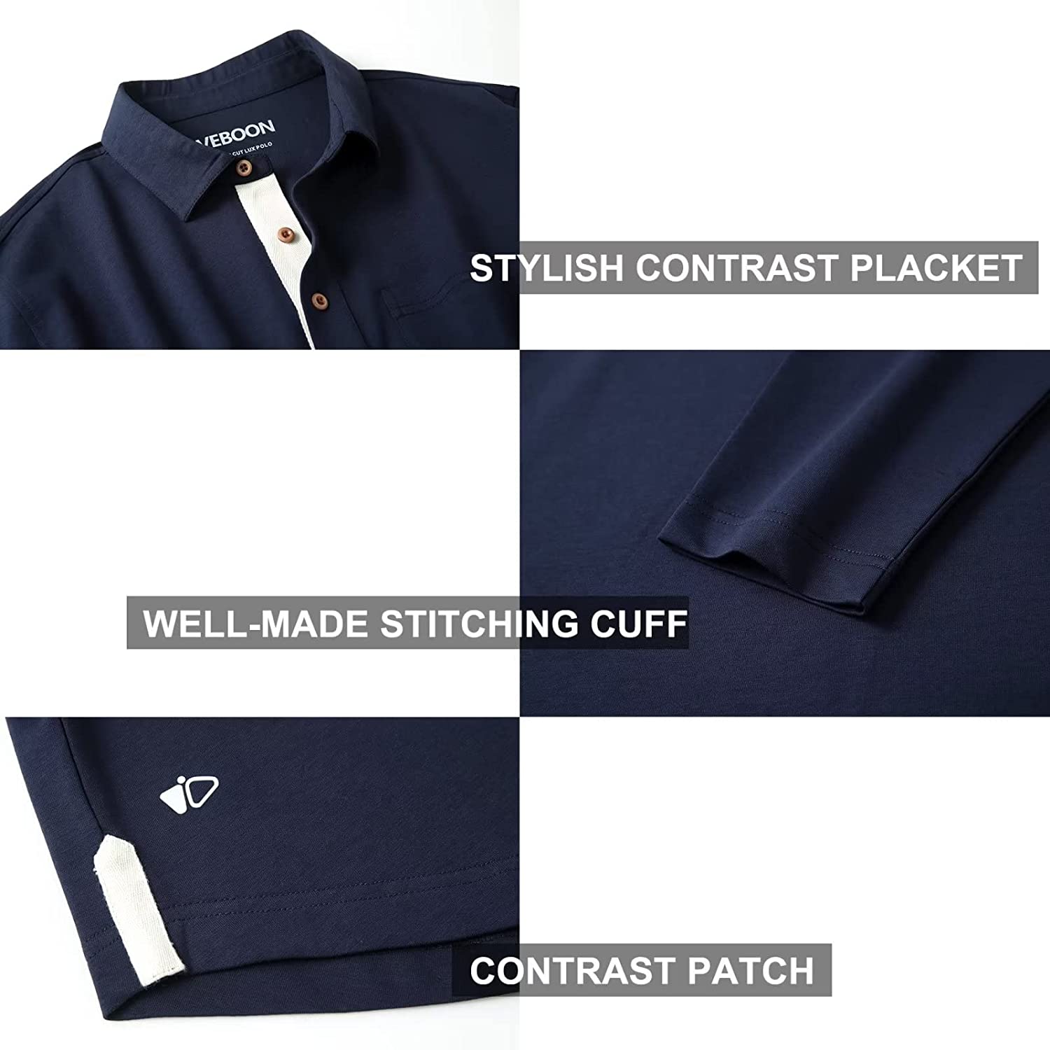 SIZE AND COLOR: Casual mens long sleeve polo shirts, based on classic fit u.s size: S, M, L, XL, XXL, 3XL with various colors: black white grey green navy blue purple that you can have different look everyday.