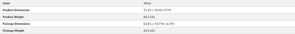 | Product Dimensions | 16"D x 31"W x 51"H |