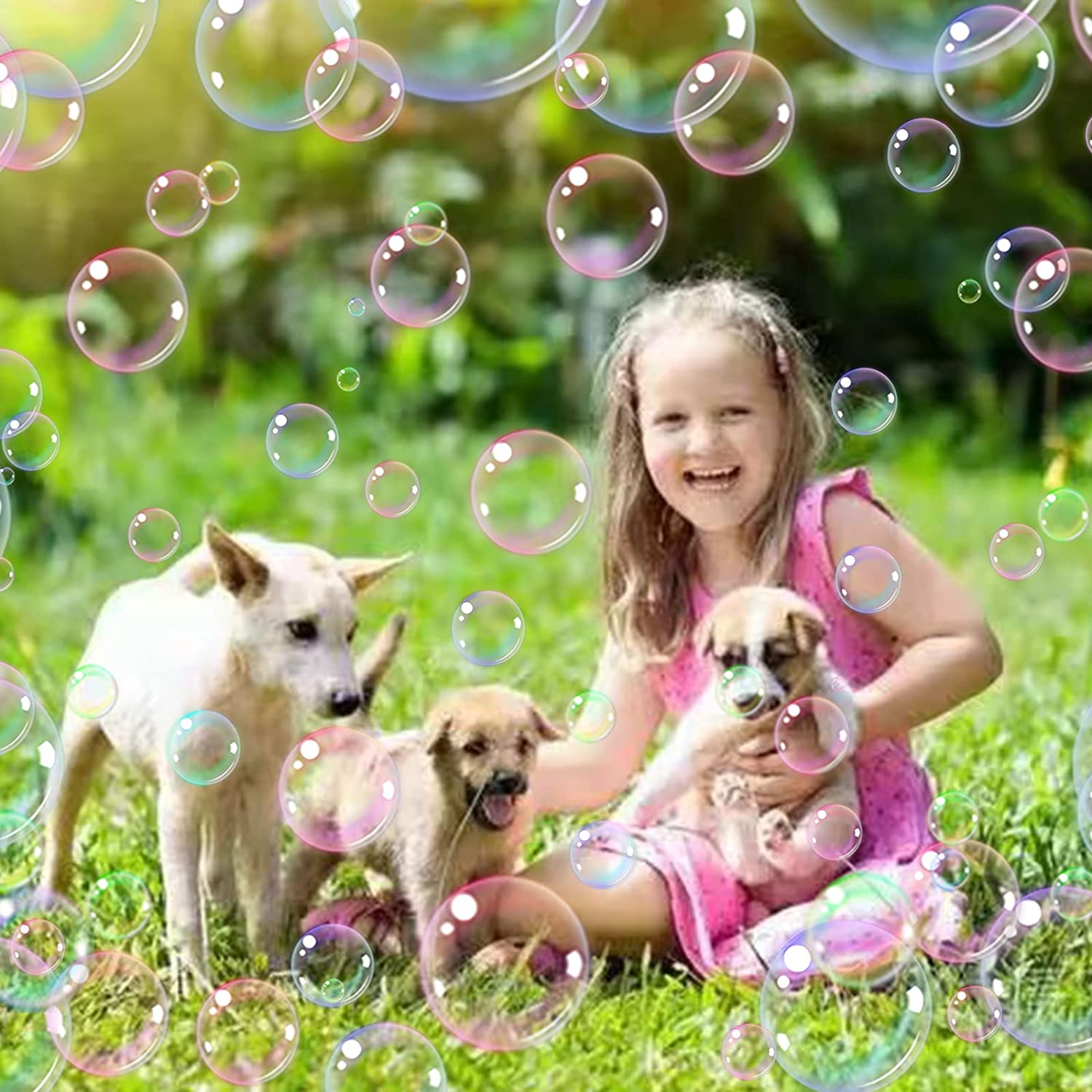 【Newly Upgraded 132-Hole Design】- The product includes a 132-hole Bubble Gun, two Bubble Liquid Bottles, 50 concentrated Bubble liquid packets, one sticker, one bubble tray, a rechargeable battery, and a charger. The tray is easy to clean and won't stick to your hands.