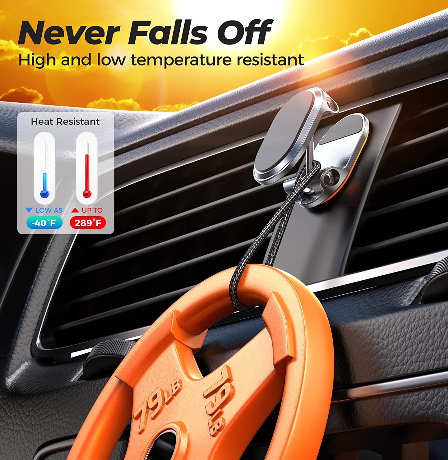 Magnetic suction and adsorption: 60 times N52 magnetic suction to hold your phone firmly (please be sure to use it together with the metal plate).3M high and low temperature resistant stickers, even at 40 degrees Celsius, will not fall off.