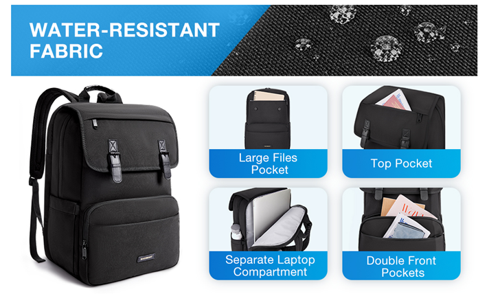 Multiple Convenient Pockets- Up to 6 compartments to fit daily uses. The large files pocket keeps A4 folders within reach. Double front pockets and the top pockets to hold essentials such as earphones, keys, pens, wallet, passport and smartphones, making it easier to reach without clutter. Retractable side pockets can hold large-capacity bottles.