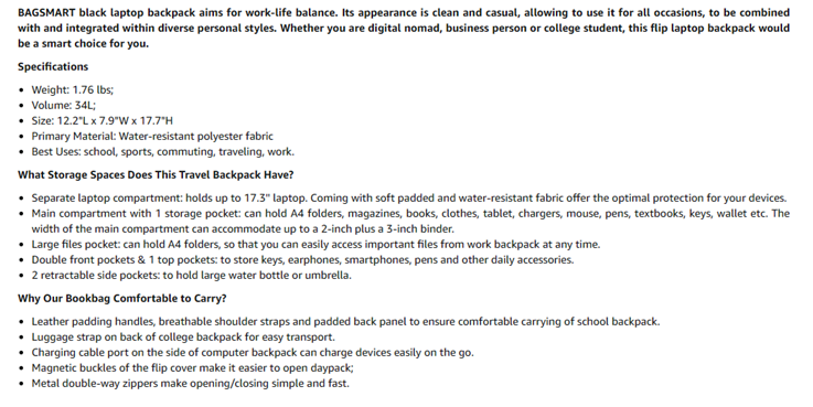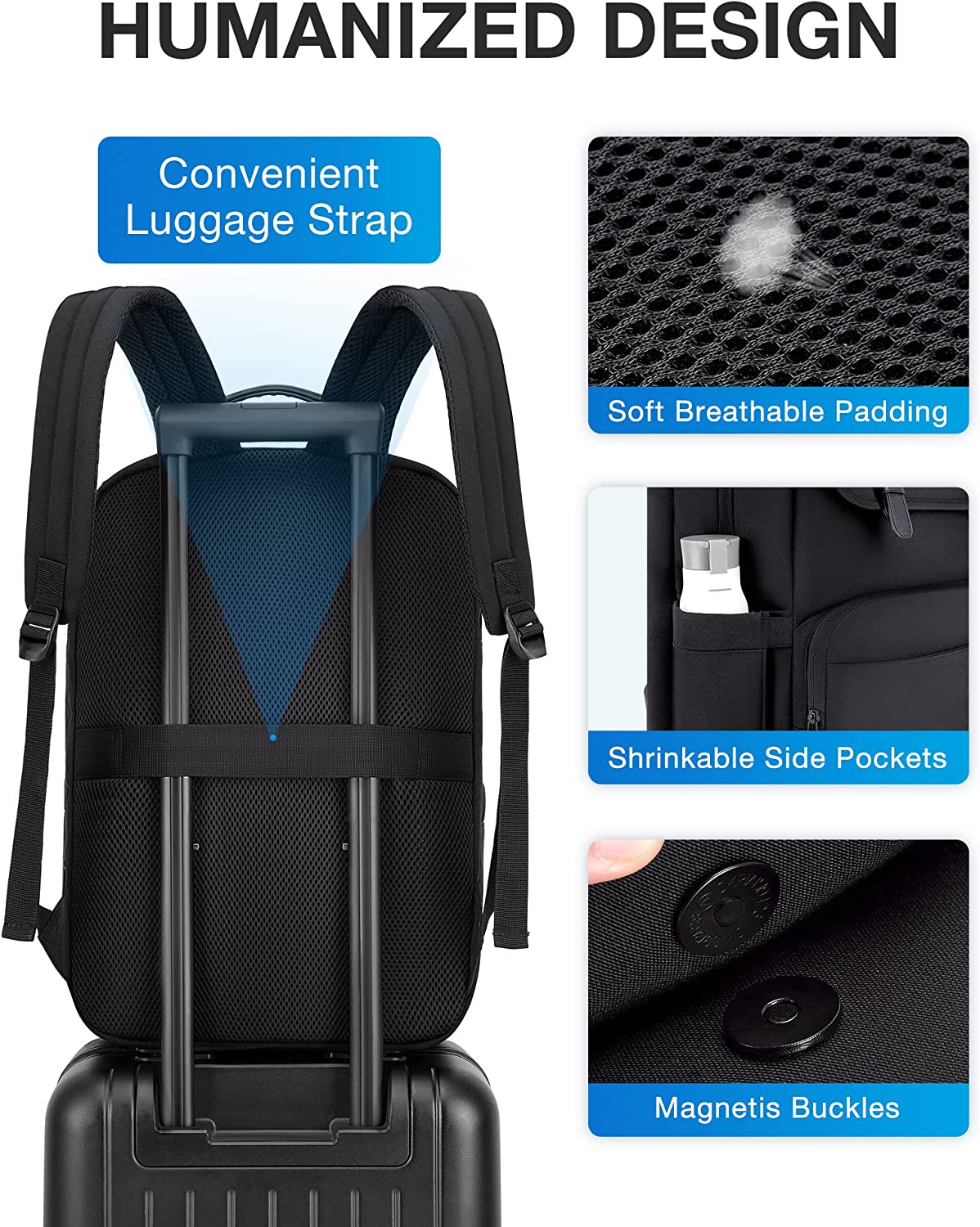 Large Capacity - The laptop backpack, 12.2"L x 7.9"W x 17.7"H, 1.76lbs, provides roomy capacity to store your clothing, A4 folders, books, 17.3'' laptop, tablet, chargers, mouse, textbooks, water bottle, umbrella, and other daily accessories. The width of the main compartment can accommodate up to a 2-inch plus a 3-inch binder. The airline-approved carry-on can be fitted overhead and under-seat, it's ideal for a weekend trip, business trip, or travel
