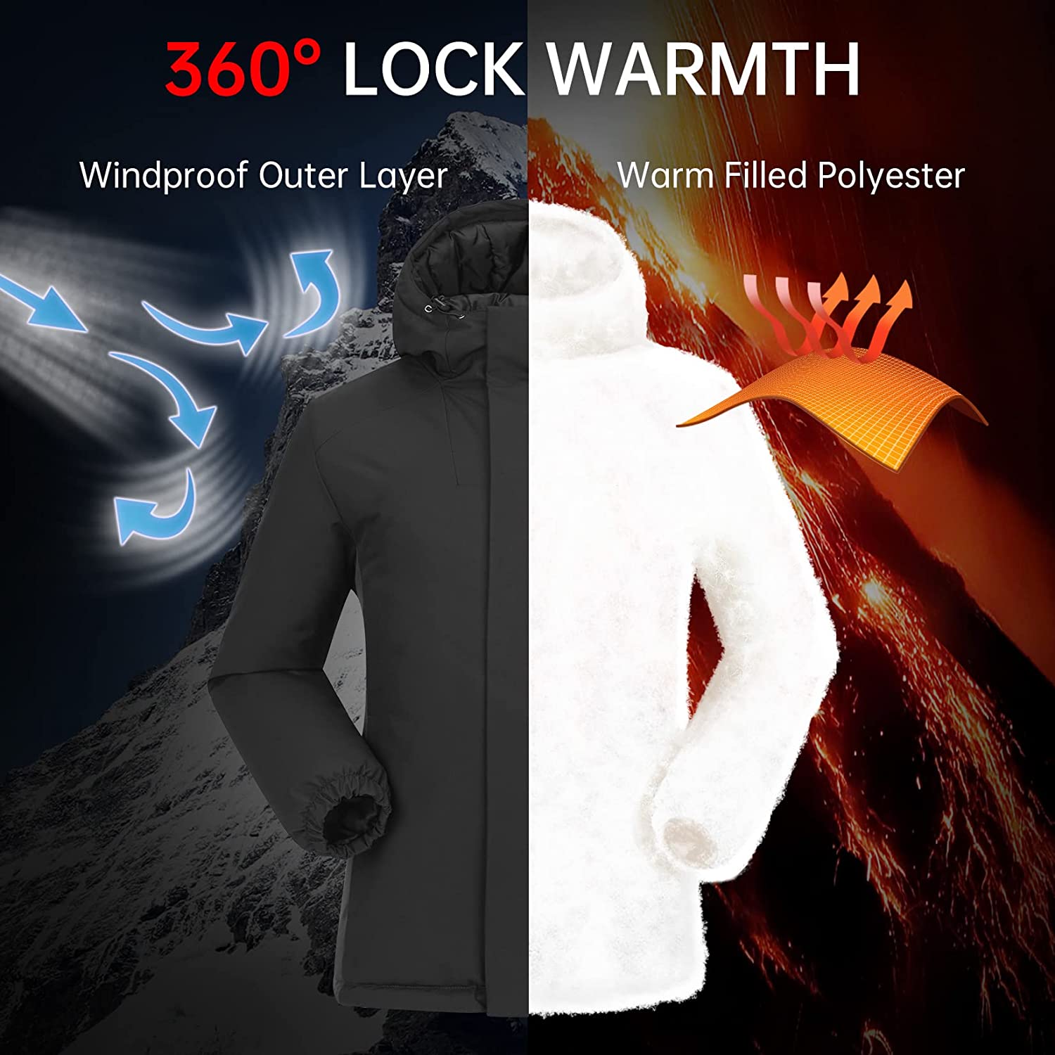 This men's winter coat offers a wide range of outdoor performance, excellent coat for skiing, snowing, hiking, climbing, and so on outdoor activities.