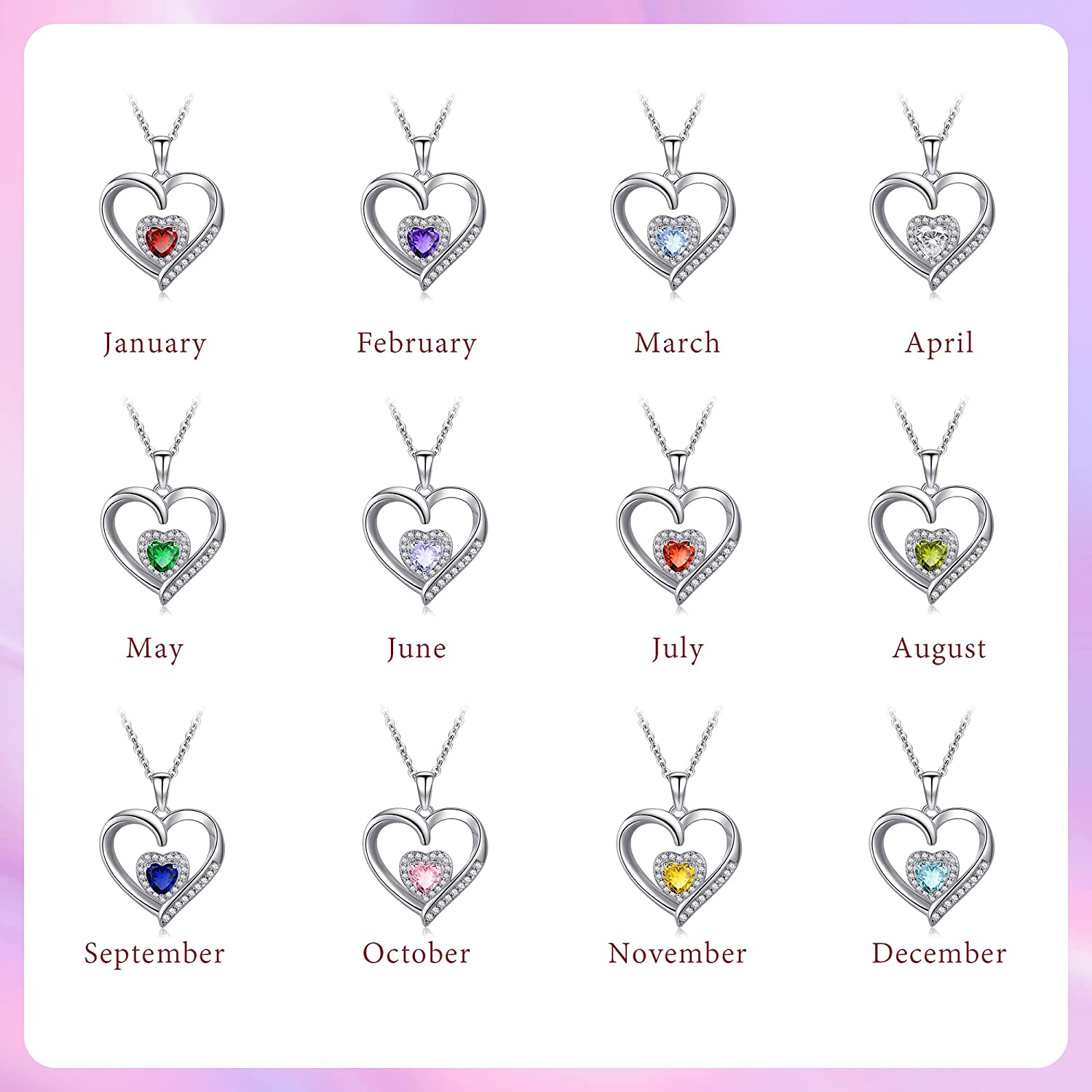 Heart Birthstone Necklace for Women, S925 Sterling Silver Necklace Birthstone Necklace Heart Necklace for Women Teen Girls Birthday Jewelry Gifts for Women Teen Girls