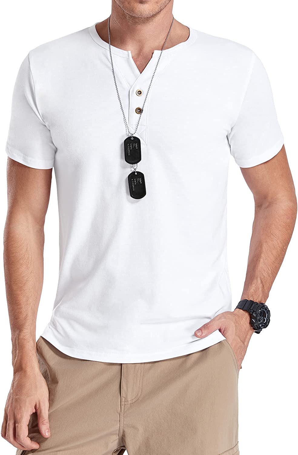 Matching: Slim fit henley V neck casual t shirt, more soft and snug fit. Matching with coat, jacket, jeans and casual pants, the best choice for spring, autumn and winter.