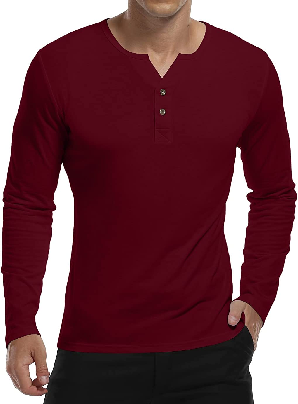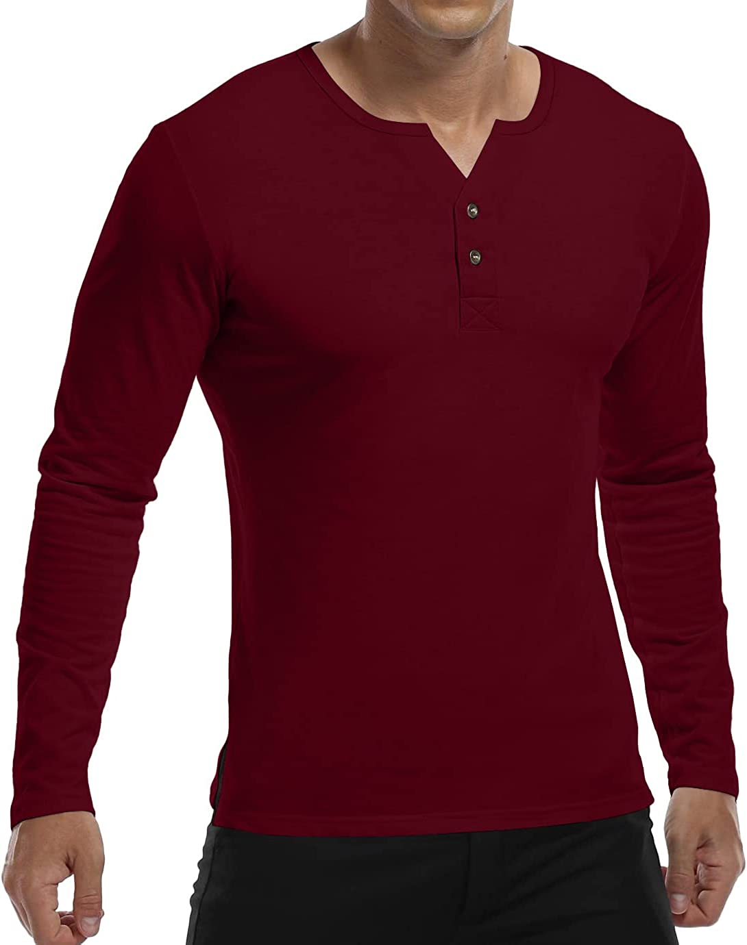 Design: Men's soft and comfortable long sleeve tee shirts, slim fit henley shirts with two buttons front design, soft to the touch for comfy wearing. Solid color t-shirts and brings you simple & effortless style along with comfort.