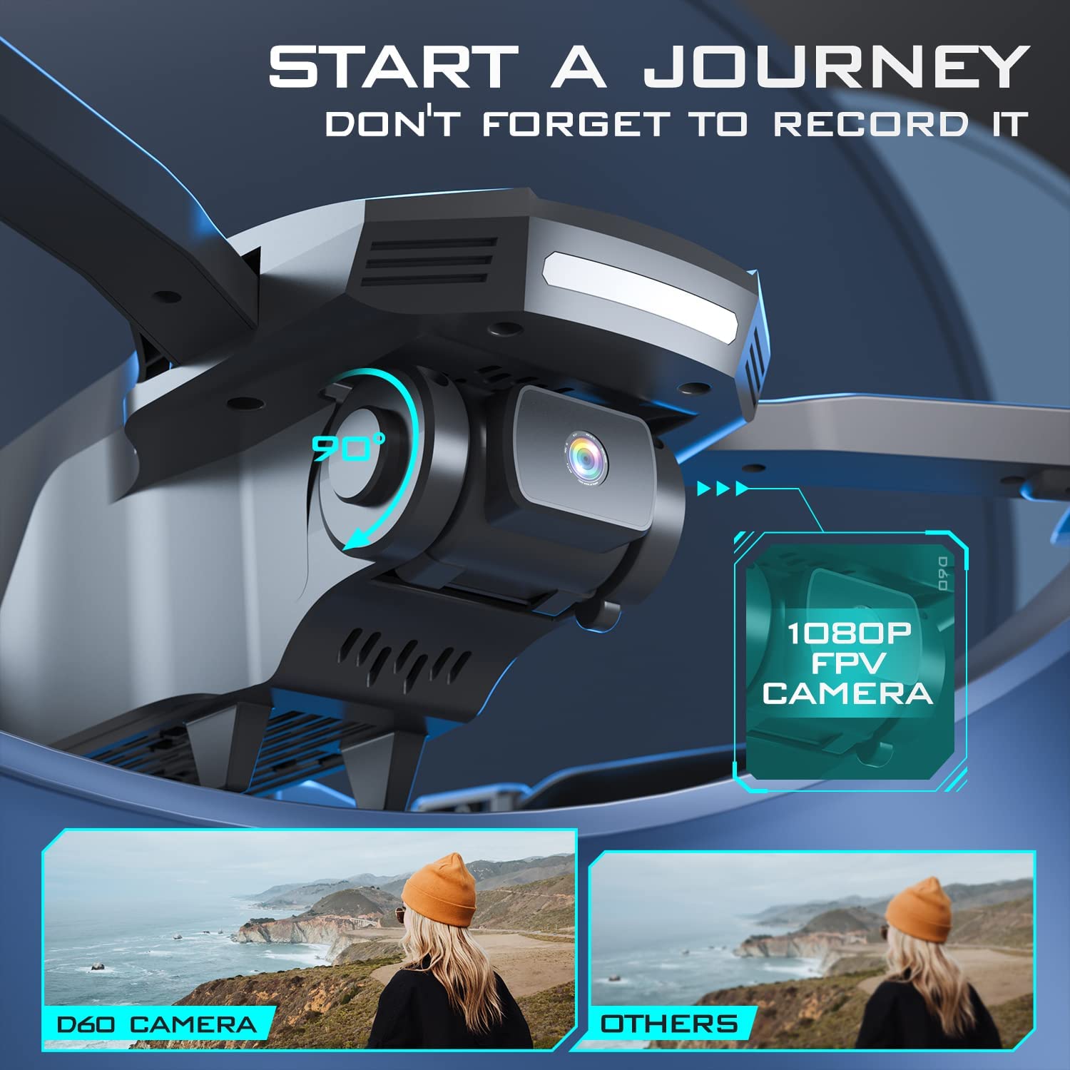 DEERC Drones with Camera for Adults Kids 1080P HD Video, D60 FPV Drone for Beginner with Long Battery Life, Gravity Sensor, Foldable Hobby RC Quadcopters & Multirotors, Toys Gifts for Boys Girls