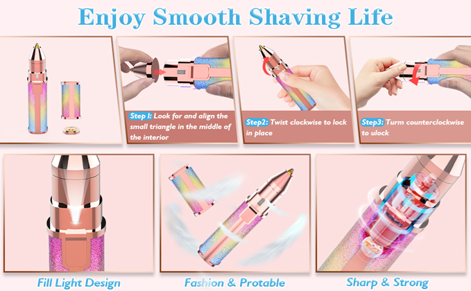 The cutting head is saved on all skin types including sensitive skin, avoiding any redness or irritation, perfect daily beauty care tool.Safe, painless and non-irritating to the skin