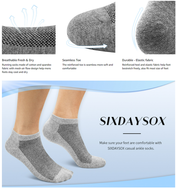 • 【Softness & No blisters】SIXDAYSOX low cut socks reinforced heel and cuff thicker cotton have extra cushion ensure softness. Cushioned sole can act as a barrier between the foot and shoe to prevent blister formation. Ankle socks are ideal for indoor and outdoor activity.