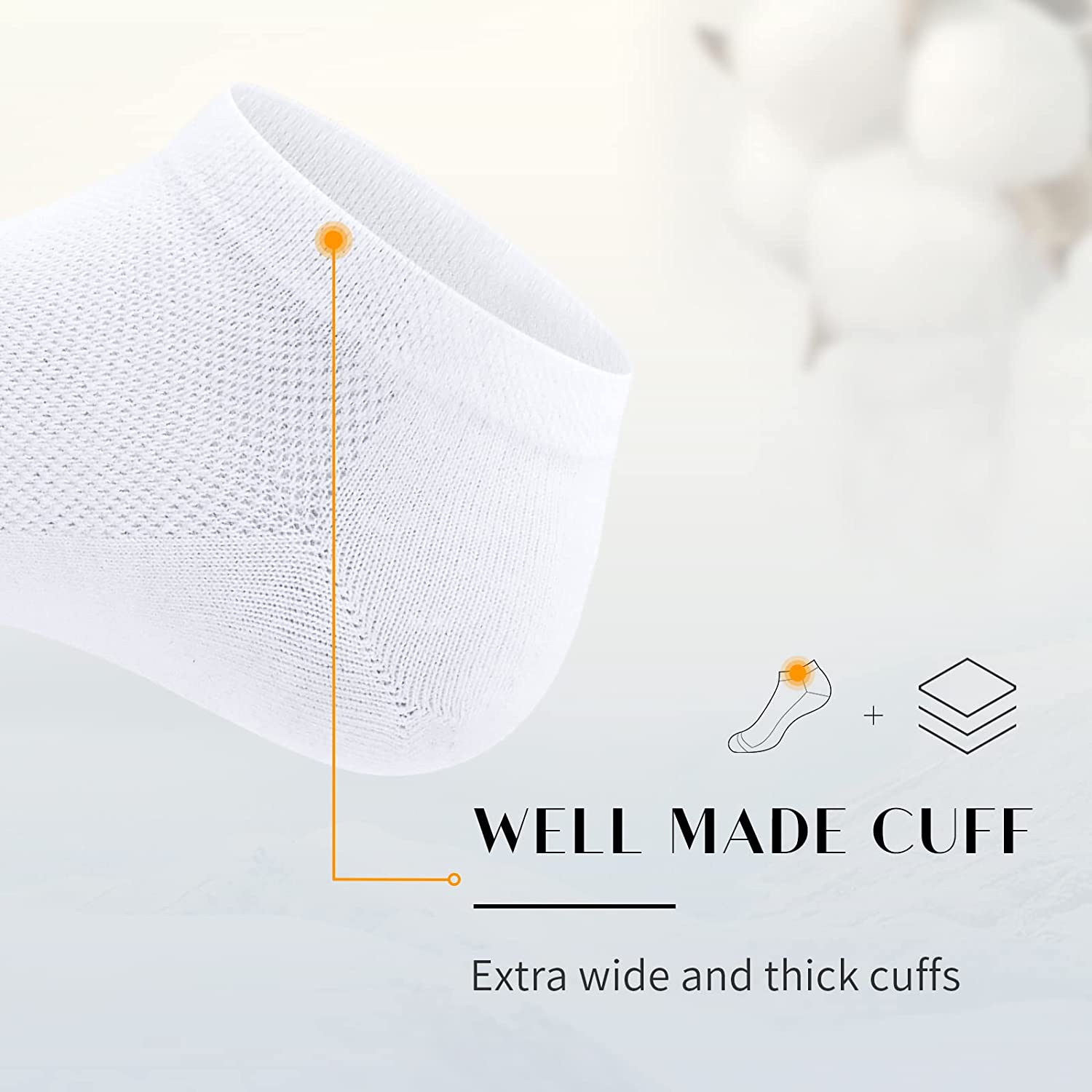 • 【High Quality Material】High cotton is the most breathable fabric ensures the softness. Mesh patchwork design for better airflow, keeping your feet dry and comfortable during exercises and dailylife.