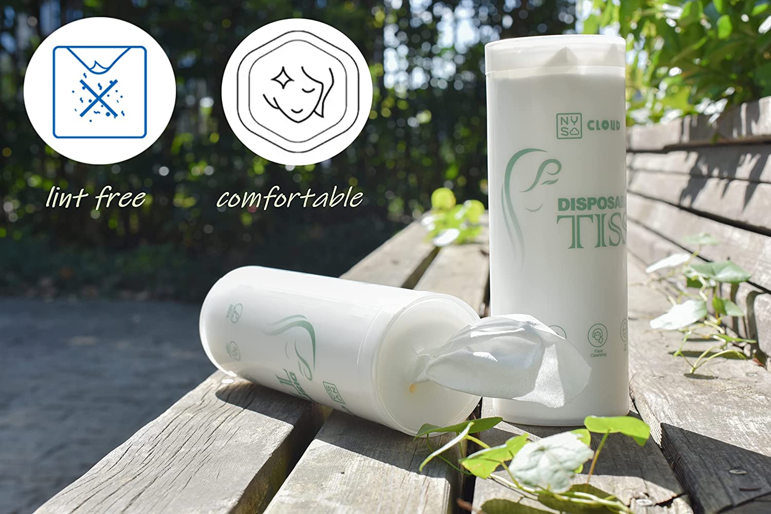 NYS CLOUD – Disposable Ultra Soft Facial Tissue, Daily Face Wipe and Cleansing Towelettes, 60 Count Portable Travel Size, Unscented
