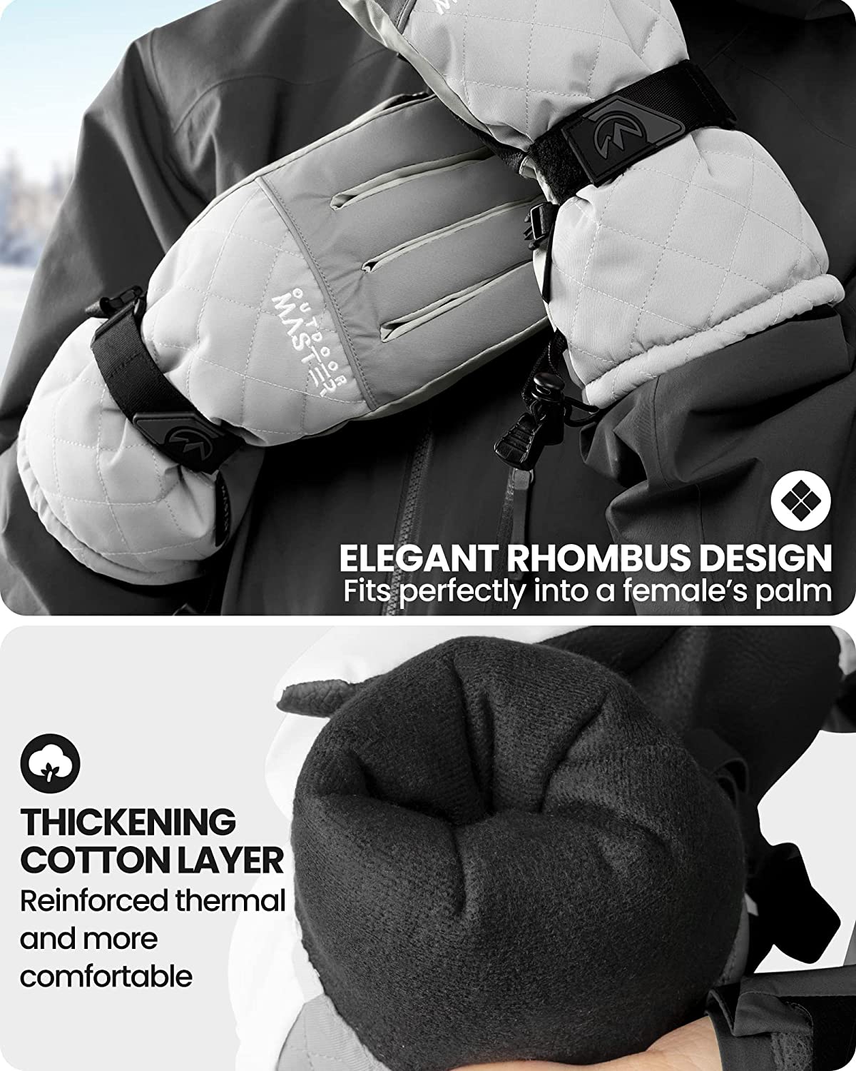 SUPERIOR WATERPROOF & WINDPROOF - Our women skiing gloves with three-layer design to protect your hand from cold weather. The exterior splash-proof layer and TPU waterproof inserts provide the wonderful waterproof and windproof effect for the snow gloves.