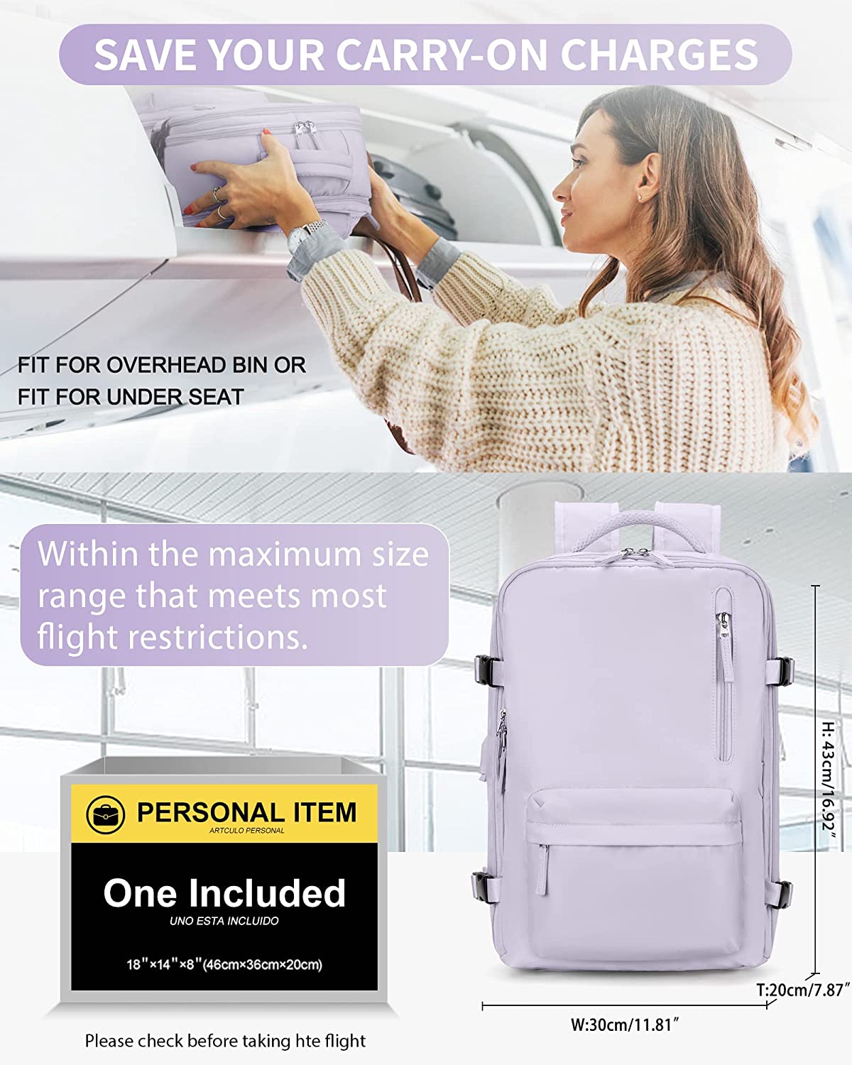 Carry on Backpack For Women: The size of backpack is 11.81*7.87*16.92(inch);Travel backpack for women airline approved that can be carried in flight, it saves you a fortune on checked fees and is perfect for traveling or on business trips under the seat on the plane.
