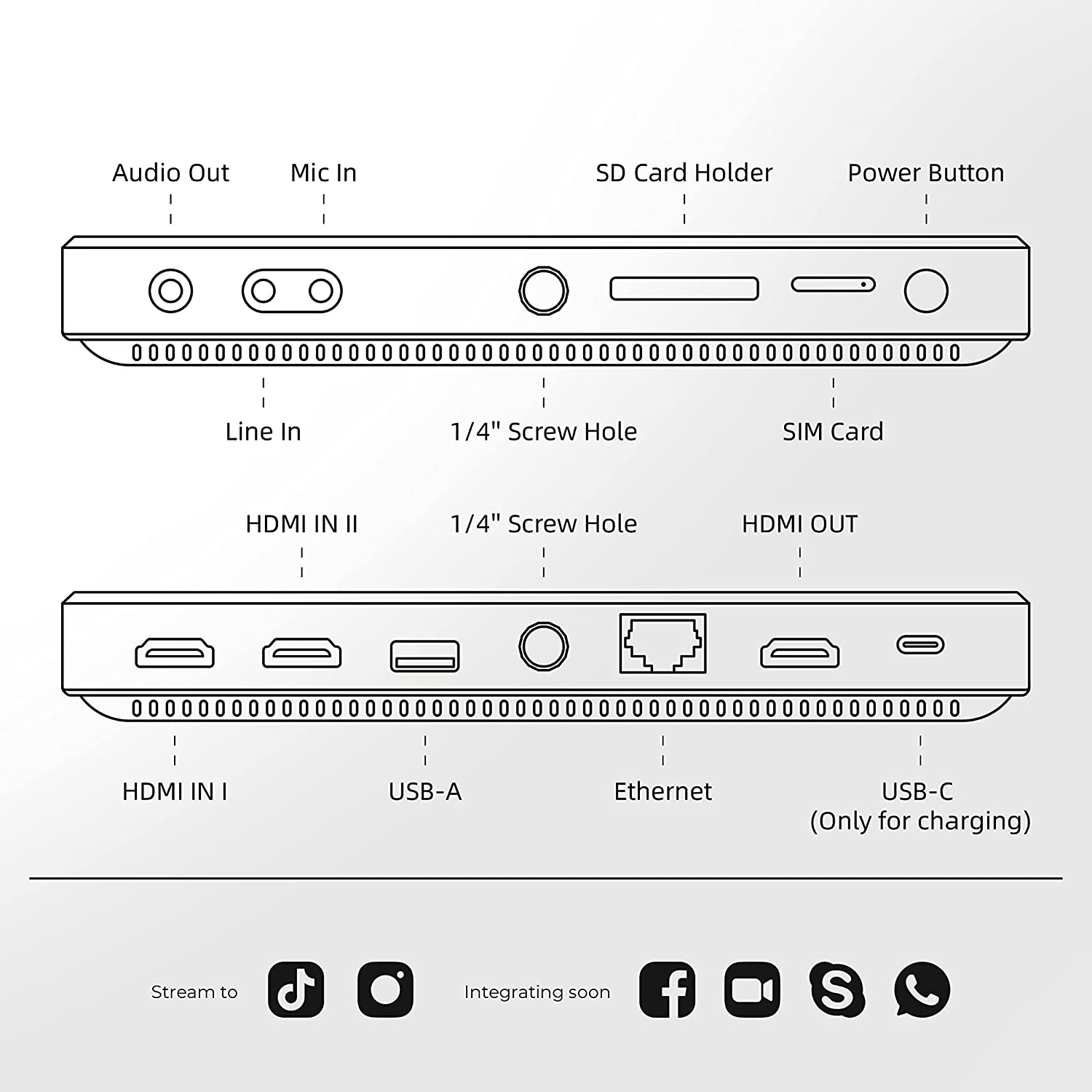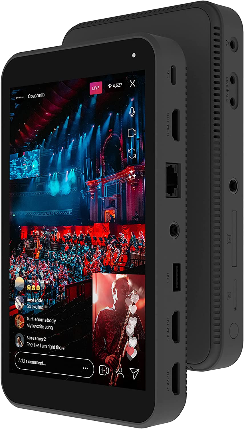 - Wildly Advanced, Yet Brilliantly Simple: Instream has 2 HDMI inputs, 1 USB input, plus local SD card video sources and PDF source from SD card, 1 Mic in, 1 Line in, 1 HDMI out, 1 Audio out. It can live stream and switch with multiple sources. The 8-inch touch screen design is still super-easy to operate. It’s brighter with 600 nits and more responsive! With a much increased built-in 10,000mAh battery, it has over 3-hour battery life.