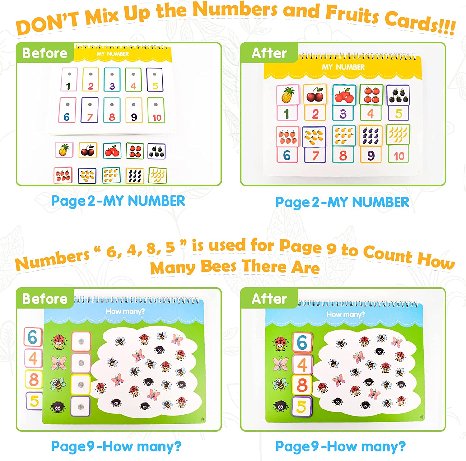 - 1. DON’T Mix Up to Use the Numbers and Fruits Cards In The Same Pages !!!